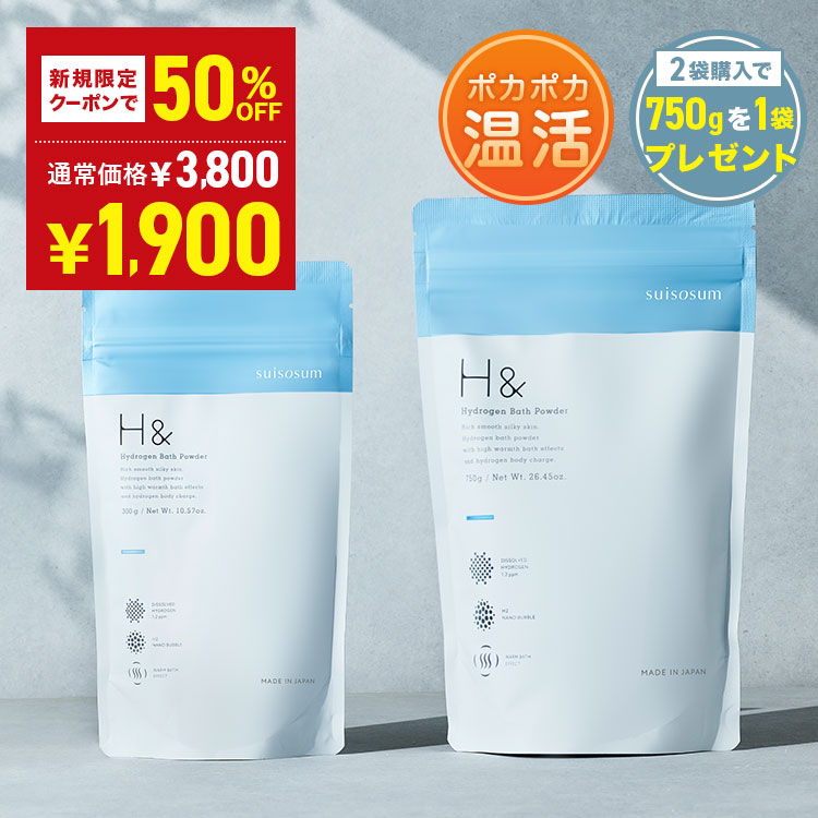 【楽天市場】\新規限定50%OFFクーポン★2袋以上ご購入でプレゼント★2月4日20:00〜/ 入浴剤 水素入浴剤 H& アッシュアンド 750g 1個 30回分 炭酸 炭酸入浴剤 重炭酸 高濃度 水素 塩素除去 保湿 無香料 ナノバブル 国産 女性 ギフト プレゼント プチギフト 水素風呂 疲労 回復 睡眠:SUISOSUM公式 楽天市場店